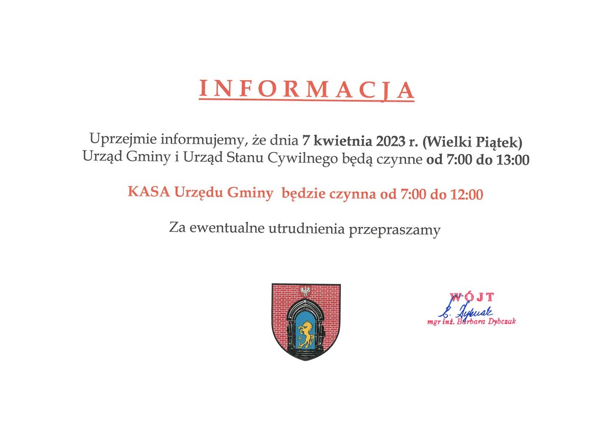 Uwaga! 7 kwietnia 2023 r. w Wielki Piątek Urząd czynny krócej