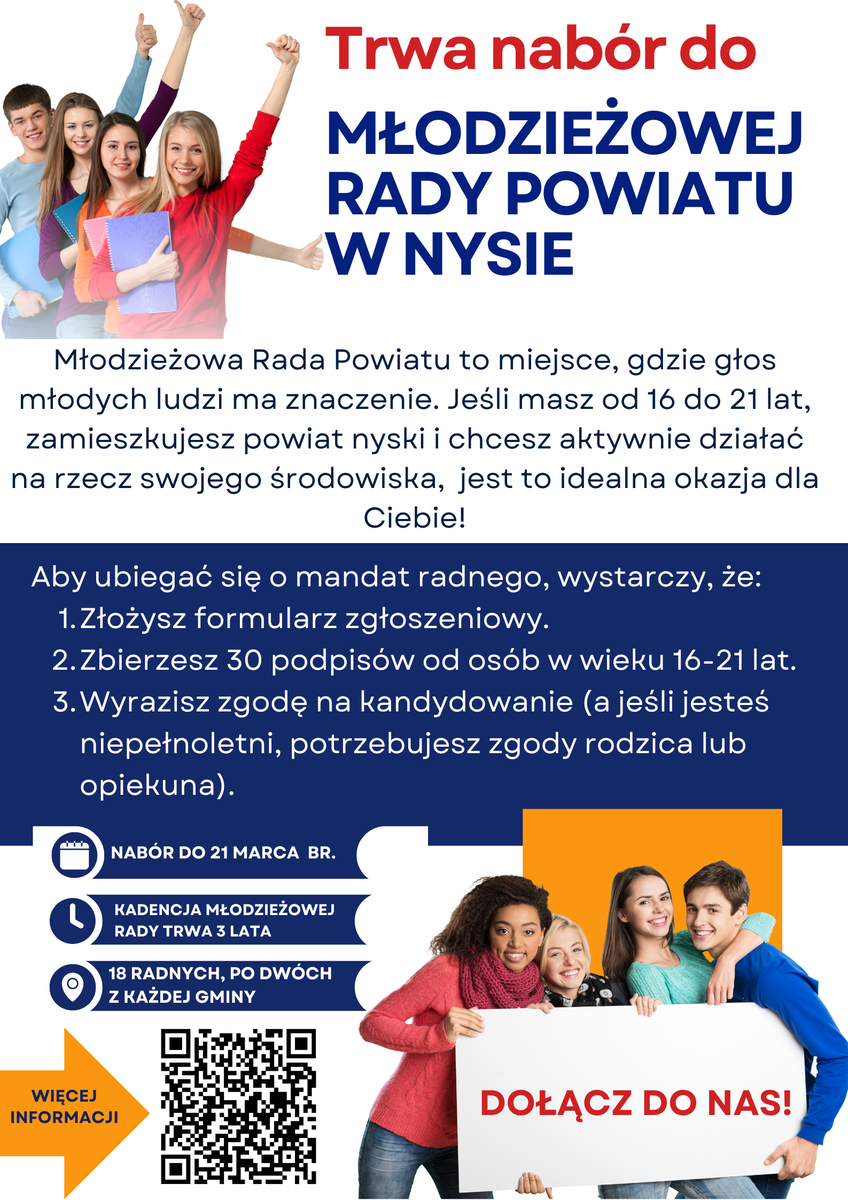 Wszelkie informacje dostępne są na stronie Starostwa Powiatowego w Nysie https://powiat.nysa.pl/aktualnosc-9940-nabor_do_mlodziezowej_rady_powiatu.html