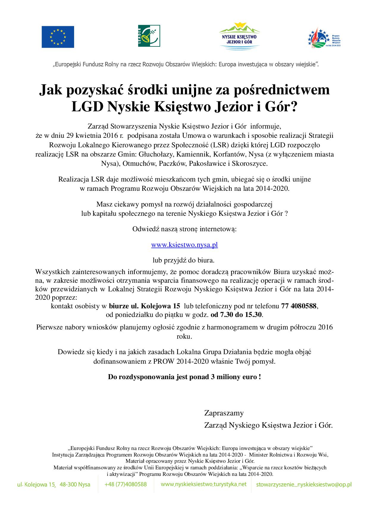 Jak pozyskać środki unijne za pośrednictwem LGD Nyskie Księstwo Jezior i Gór?