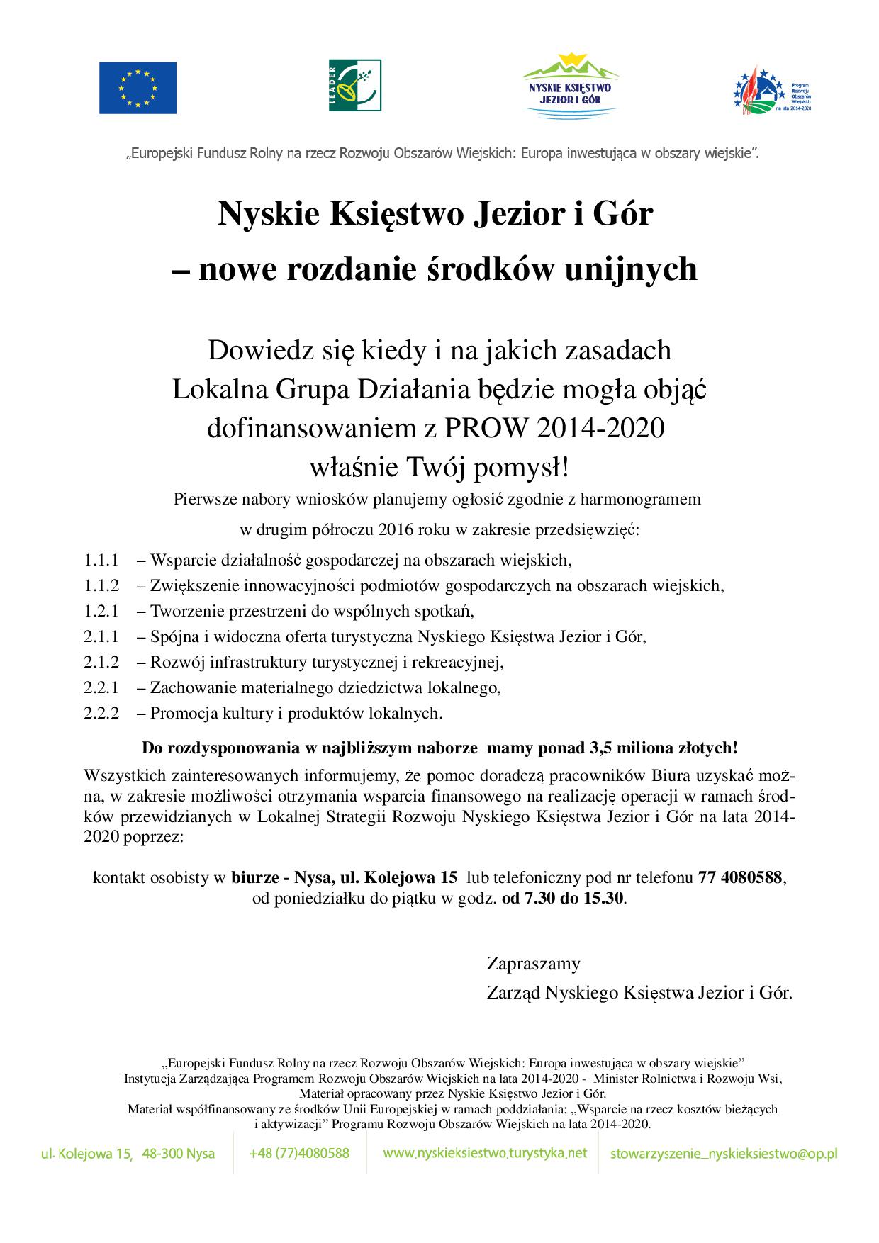 NYSKIE KSIĘSTWO JEZIOR I GÓR- NOWE ROZDANIE ŚRODKÓW UNIJNYCH
