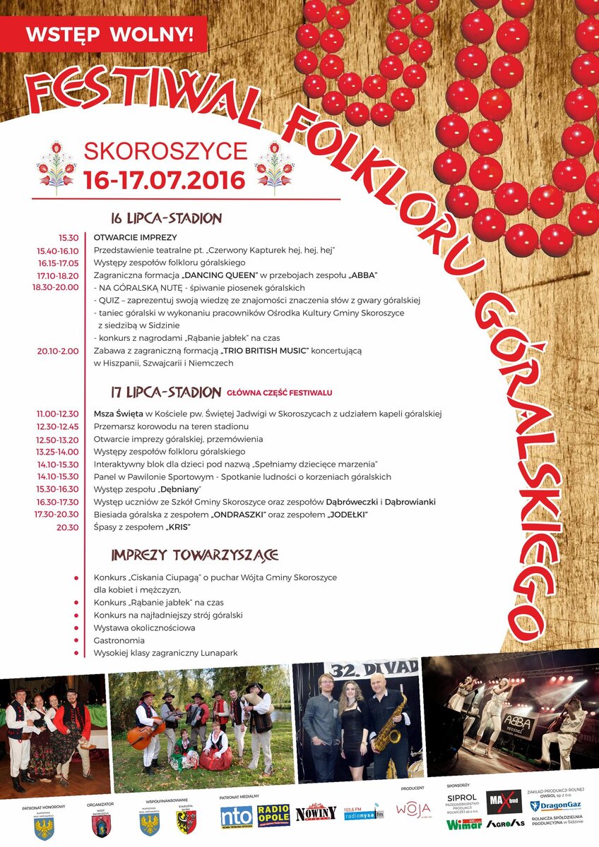 Zapraszamy do udziału w Festiwalu Folkloru Góralskiego w Skoroszycach w dniach 16-17 lipca 2016r.