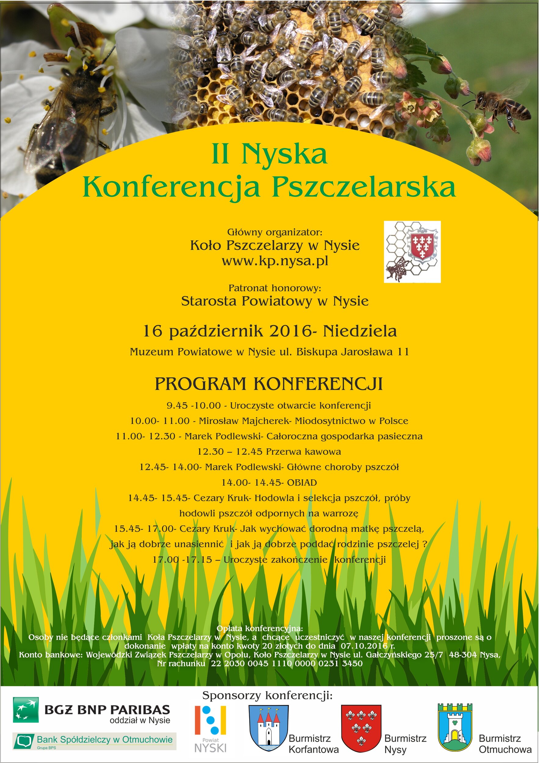 Koło Pszczelarzy w Nysie zaprasza do udziału w II Konferencja Pszczelarska w Nysie 16.10.2016.
