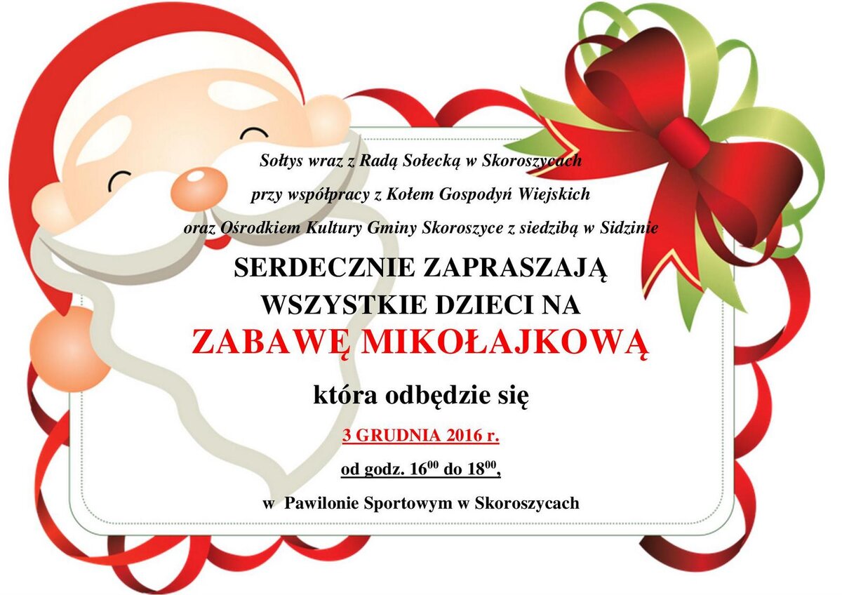 ZAPRASZAMY WSZYSTKIE DZIECI NA ZABAWĘ MIKOŁAJKOWĄ