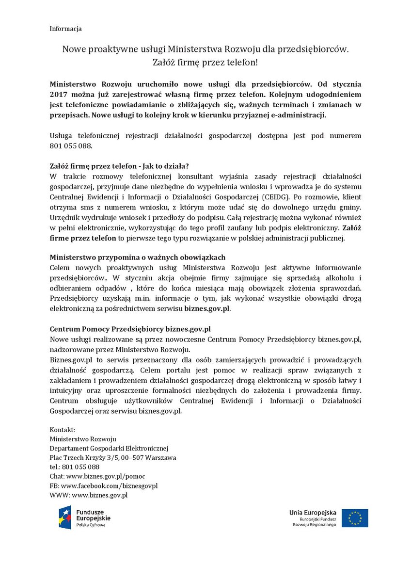 Nowe proaktywne usługi Ministerstwa Rozwoju dla przedsiębiorców. Załóż firmę przez telefon!
