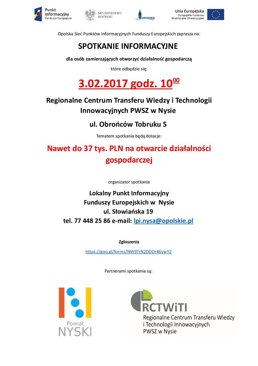 SPOTKANIE INFORMACYJNE dla osób zamierzających otworzyć działalność gospodarczą
