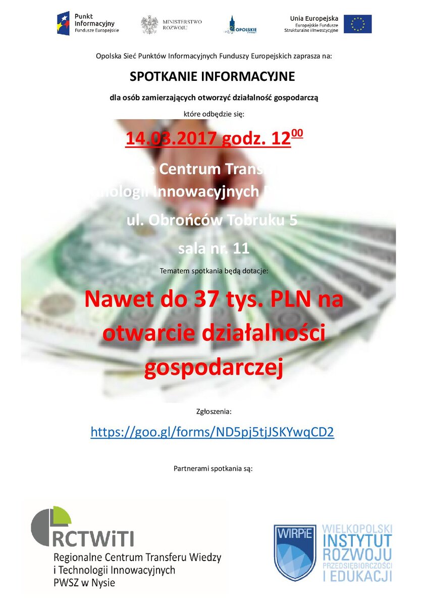 Spotkanie informacyjne - dotacje na otwarcie działalności gospodarczej