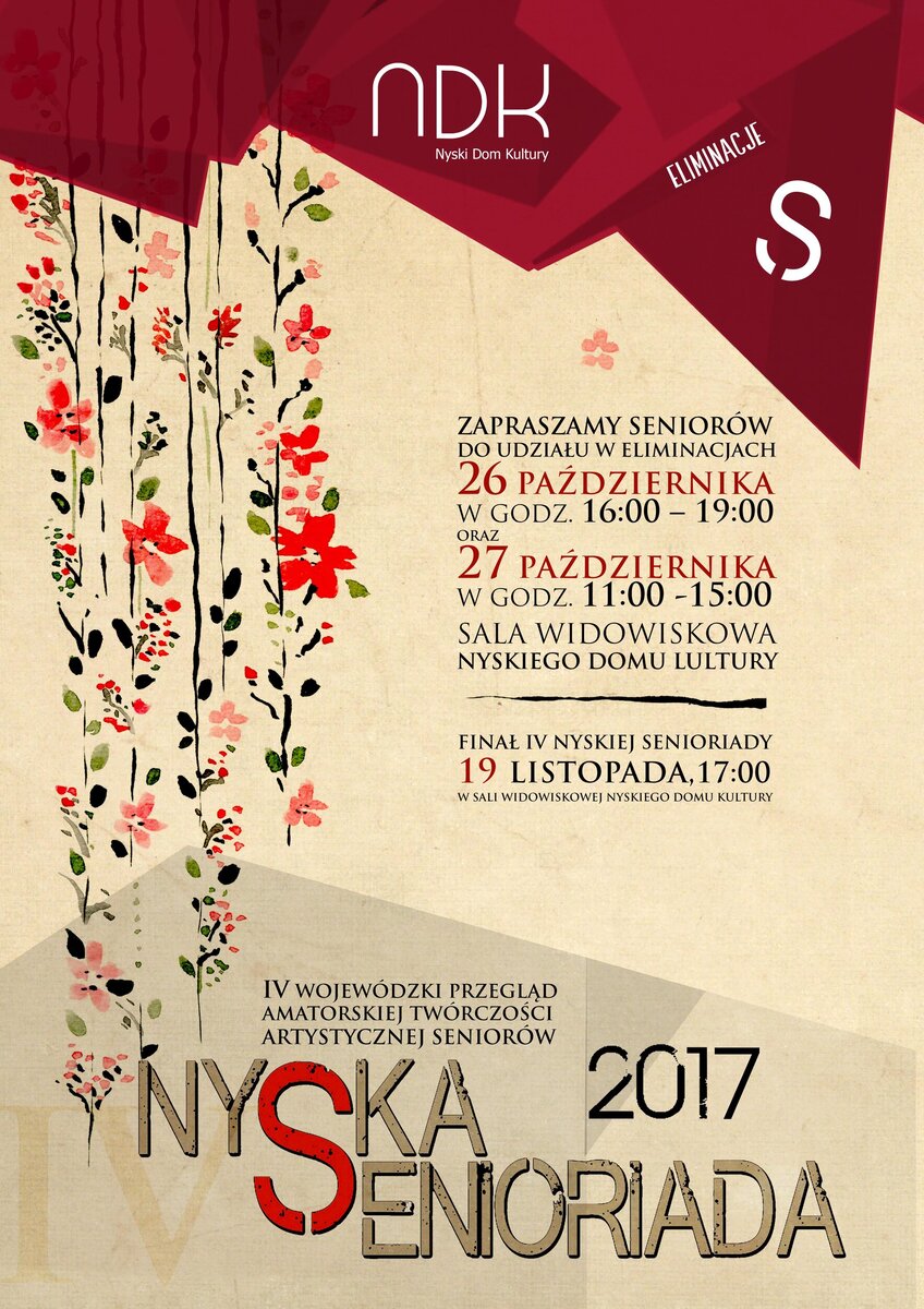 Mamy zaszczyt poinformować, że w dniach 26-27 października br. w Sali Widowiskowej Nyskiego Domu Kultury odbędzie się IV edycja Wojewódzkiego Przeglądu Twórczości Amatorskiej Seniorów – IV Nyska Senioriada. W tym roku prezentacje odbywać się będą w trzech kategoriach tj. słowo, śpiew, taniec.