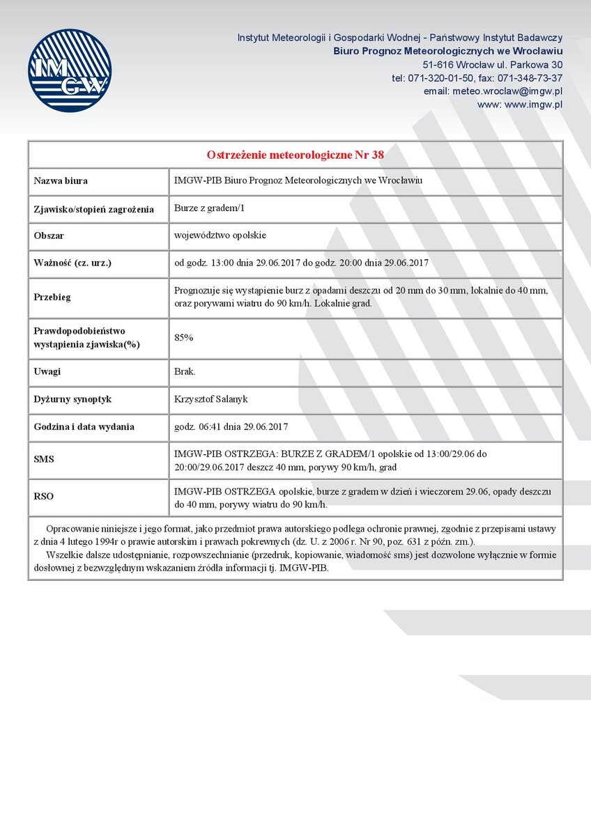 Ostrzeżenie meteorologiczne Nr 38