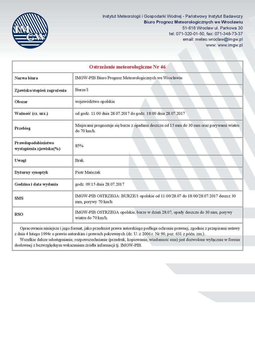 Miejscami prognozuje się burze z opadami deszczu od 15 mm do 30 mm oraz porywami wiatru