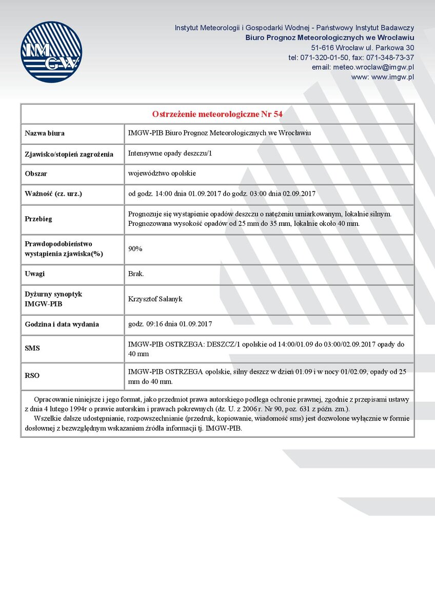 Prognozowana wysokość opadów od 25 mm do 35 mm, lokalnie około 40 mm.