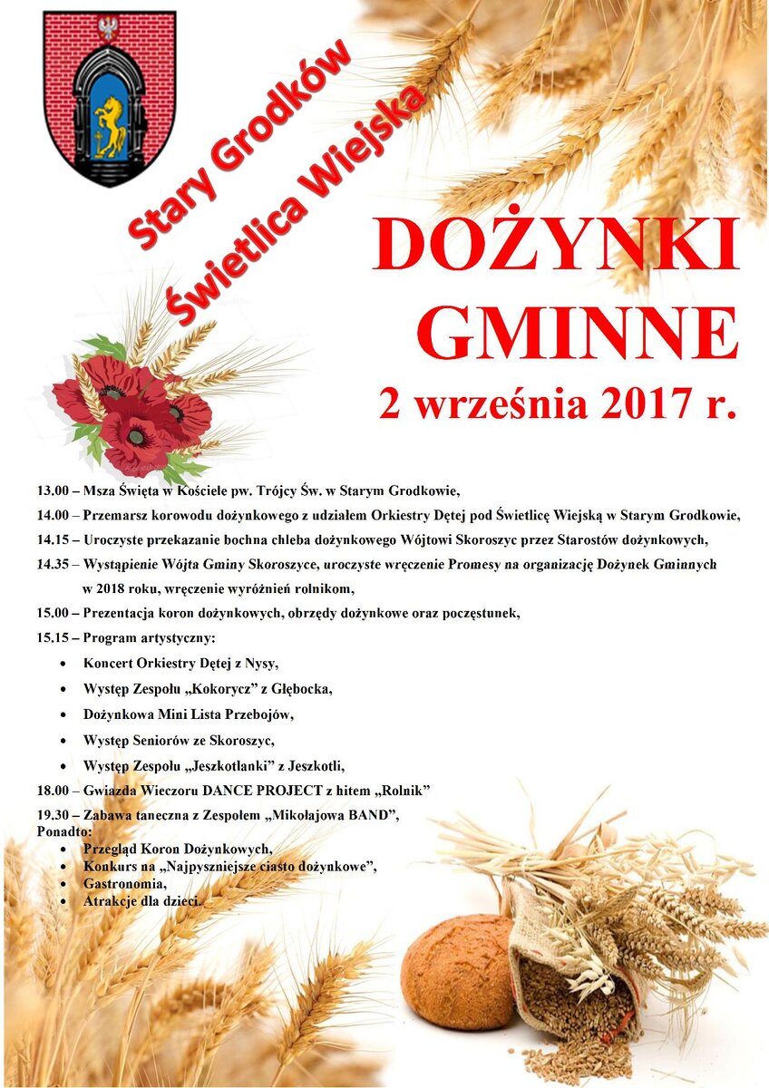Zapraszamy Wszystkich do wspólnej zabawy na Dożynkach Gminnych w Starym Grodkowie, które odbędą się 02.09.2017 r.