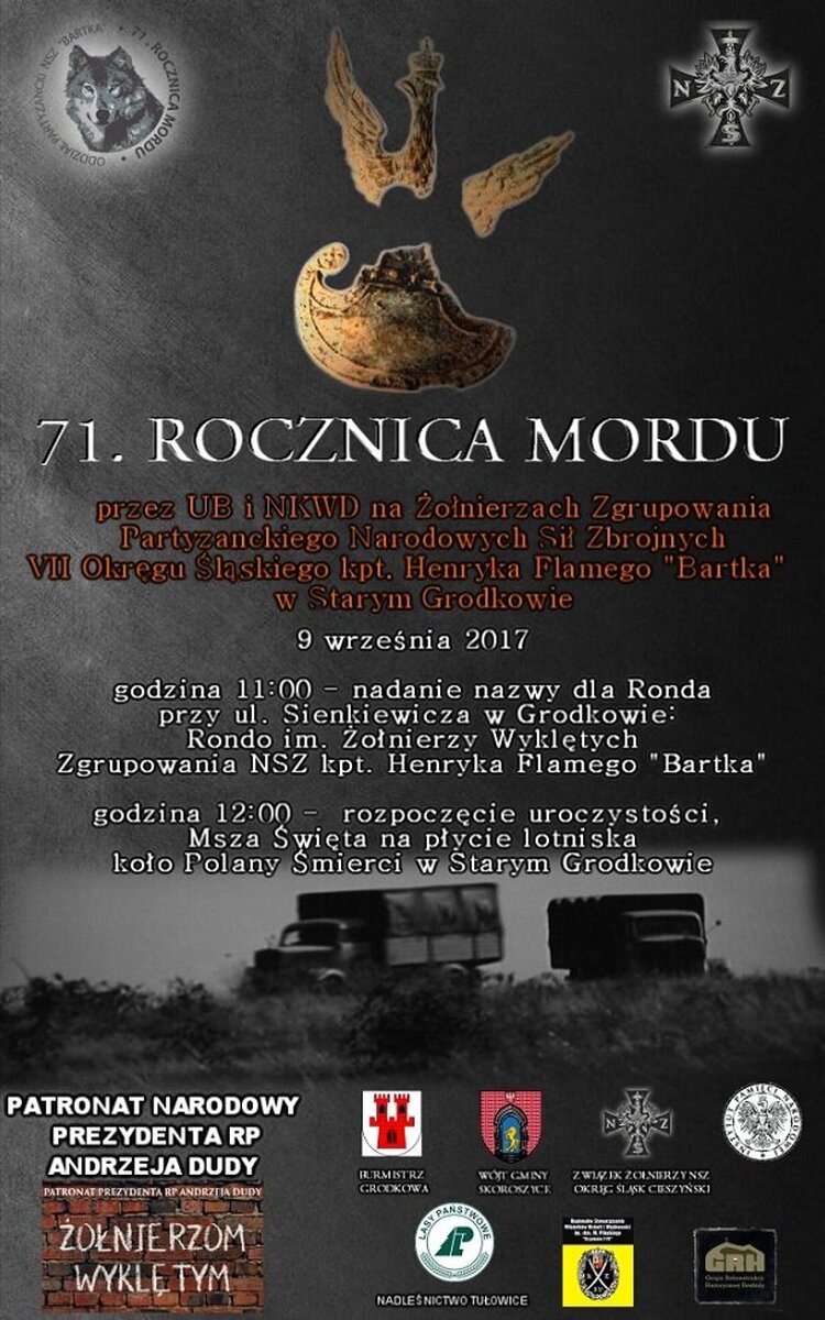 Obchody odbędą się na „Polanie Śmierci” w Starym Grodkowie, czyli na terenie przylegającym do byłego poniemieckiego lotniska wojskowego, gdzie we wrześniu 1946 roku, funkcjonariusze bezpieki zamordowali 30 żołnierzy NSZ VII Okręgu Śląskiego, którymi dowodził kpt. Henryk Flame.