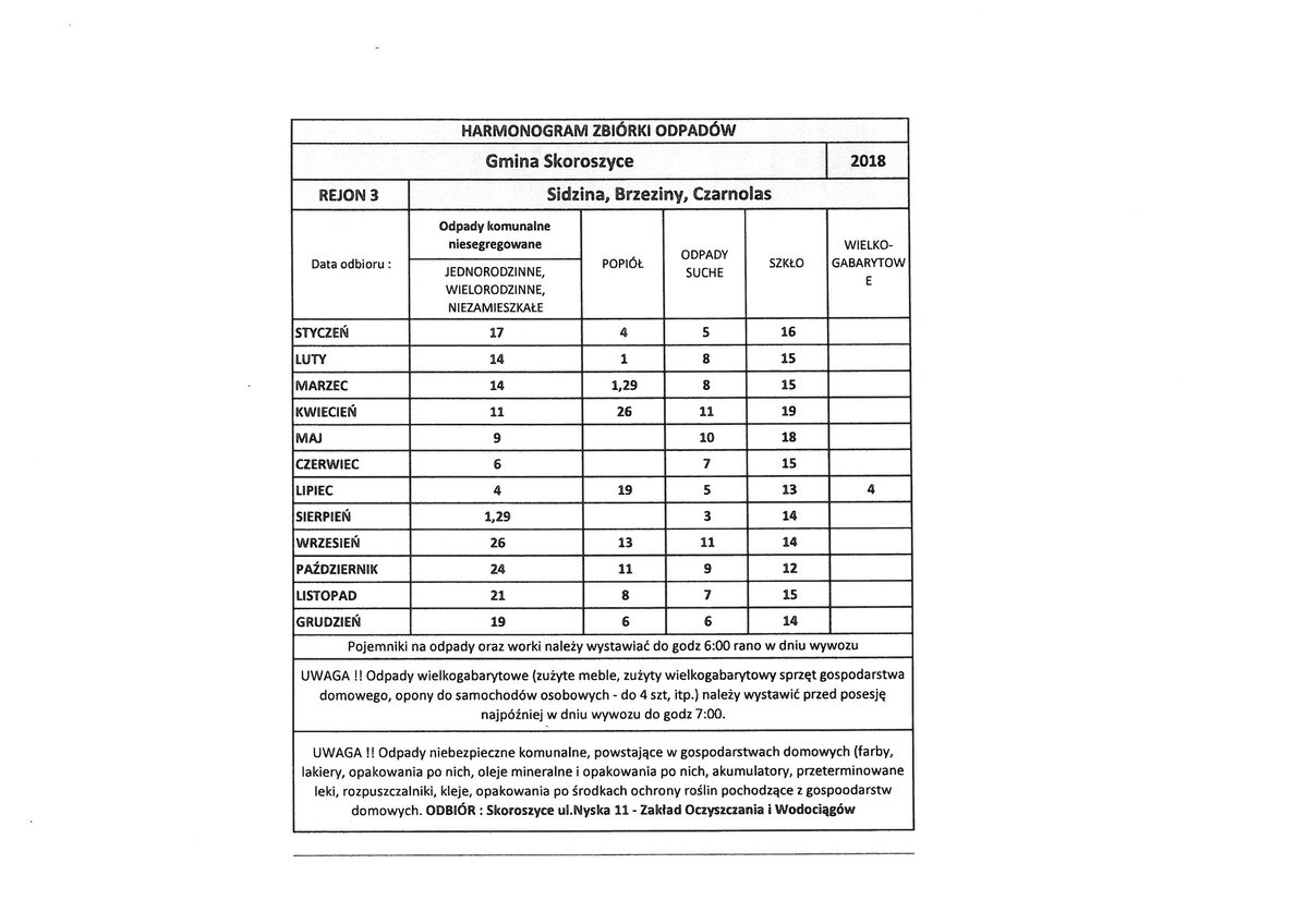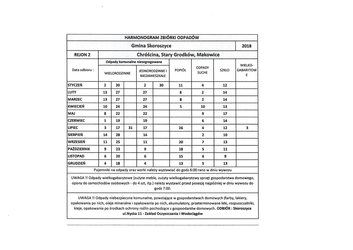 HARMONOGRAM ZBIÓRKI ODPADÓW 2018