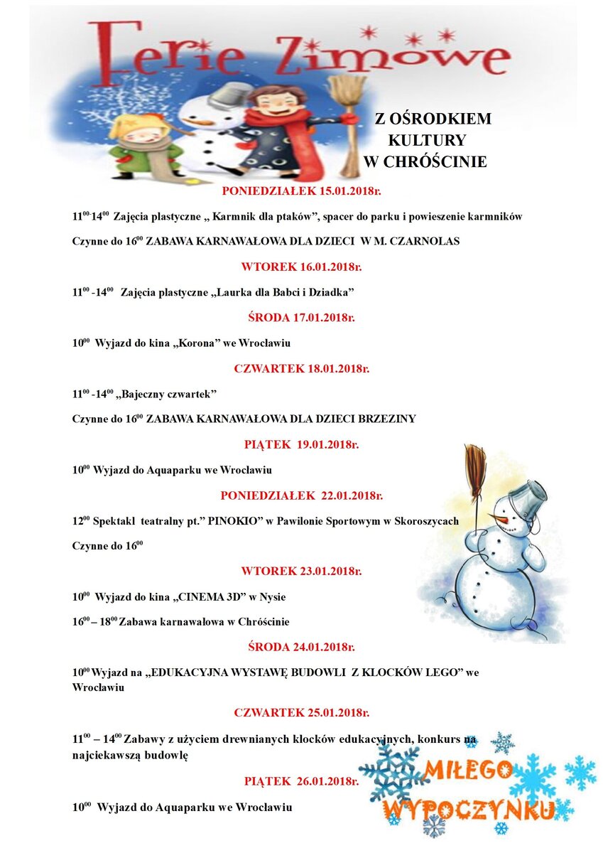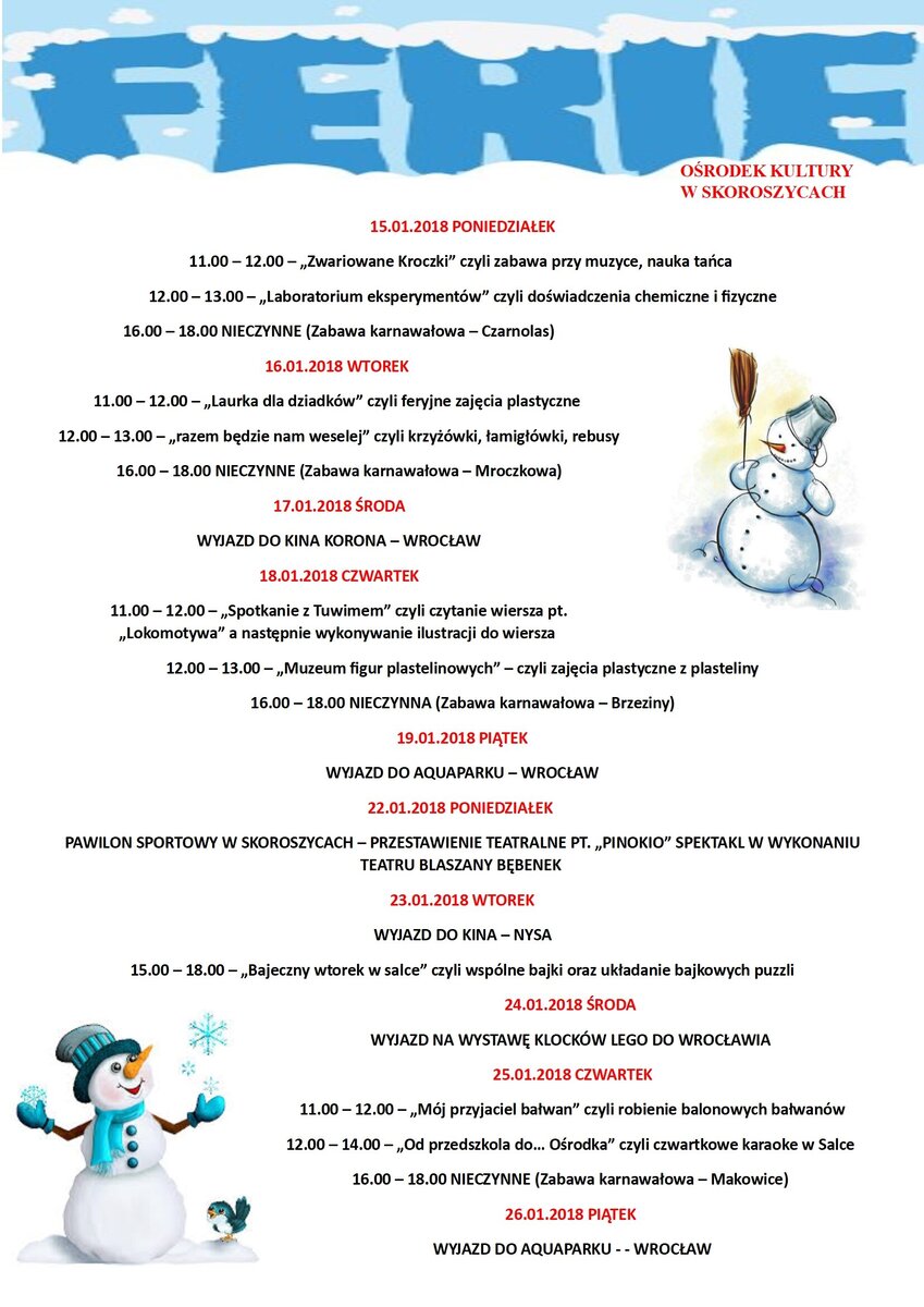Ferie zimowe 2018 z Ośrodkiem Kultury Gminy Skoroszyce