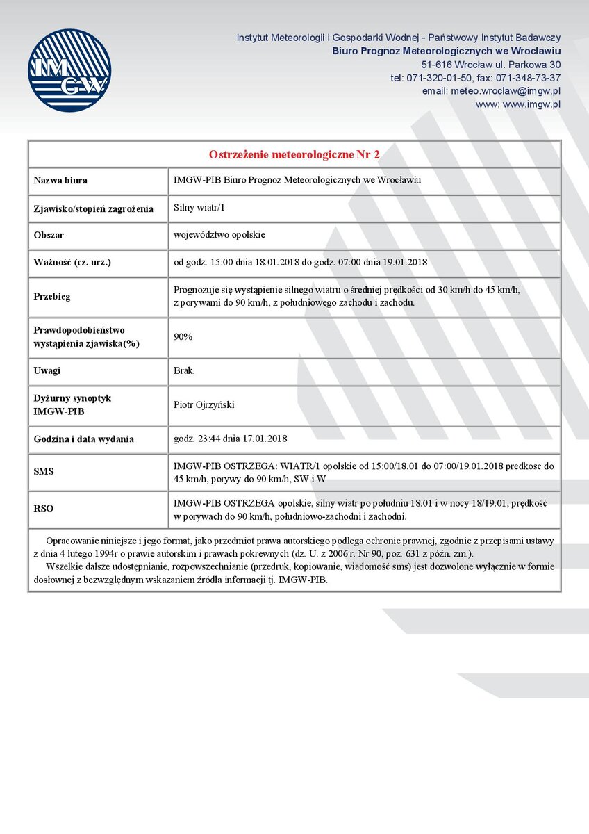 Ostrzeżenie meteorologiczne Nr 2