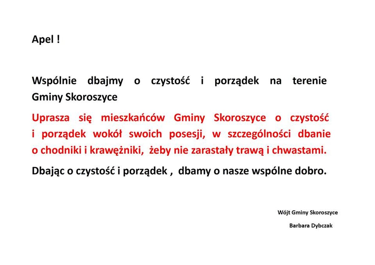 WSPÓLNIE DBAJMY O CZYSTOŚĆ I PORZĄDEK NA TERENIE GMINY SKOROSZYCE
