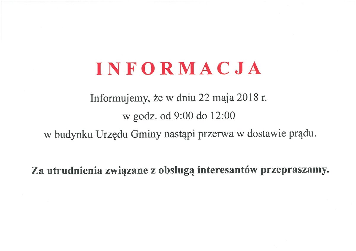 Przerwa w dostawie prądu dla budynku Urzędu Gminy w Skoroszycach
