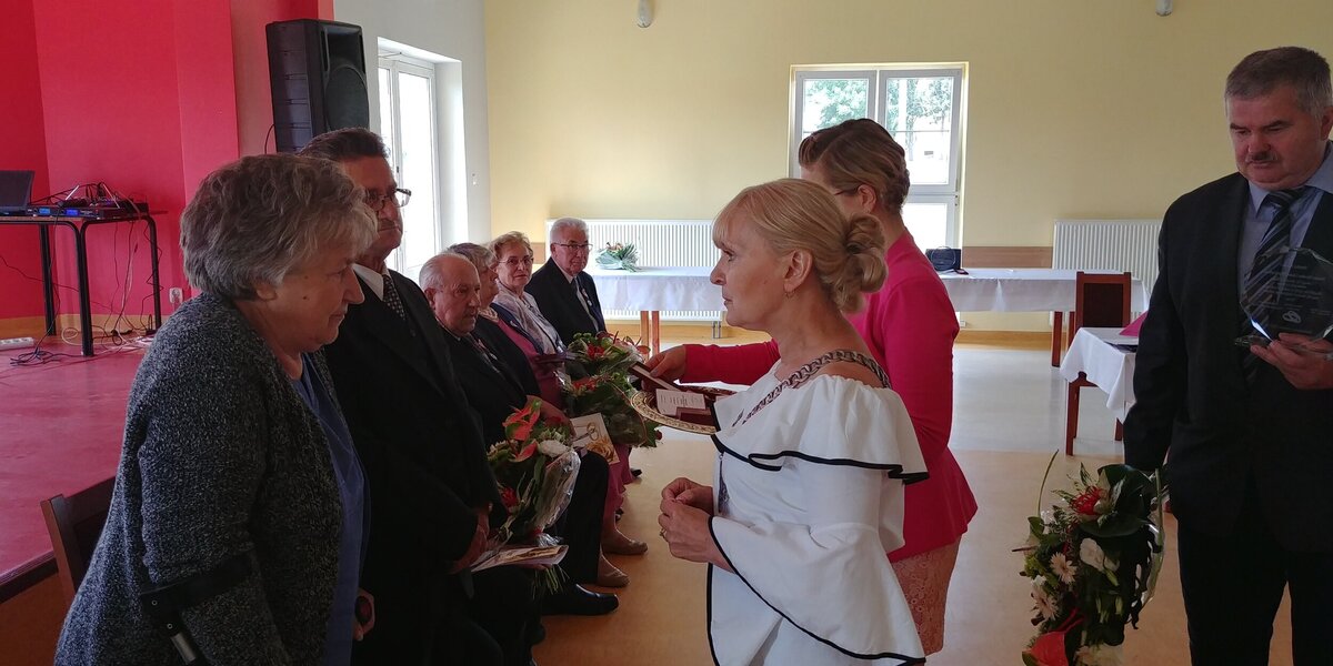 Z tej okazji Barbara Dybczak Wójt Gm. Skoroszyce zaprosiła do Pawilonu Sportowego w Skoroszycach dostojnych Jubilatów na uroczyste spotkanie w towarzystwie najbliższej rodziny.