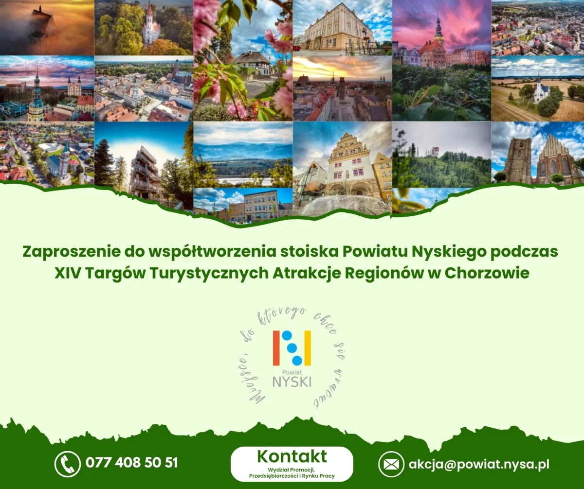 Zamierzamy z pomocą Gmin Powiatu Nyskiego zorganizować wspólną ekspozycję promującą walory turystyczne naszego pogranicza, produkty turystyczne oraz ofertę noclegową i gastronomiczną. Naszym wspólnym celem będzie zachęcenie mieszkańców Śląska, do odwiedzenia naszego regionu, który ze względu na bliskość może być dla nich atrakcyjną destynacją turystyczną, a także pokazanie gotowości regionu do przyjęcia turystów po powodzi z 2024 r.