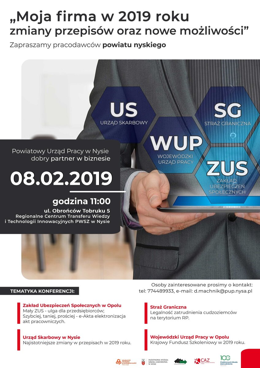 Prosimy o potwierdzenie udziału do dnia 05.02.2019 roku telefonicznie pod numerem 77 4489933 lub na adres e-mail: d.machnik@pup.nysa.pl