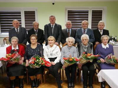 Drogim Jubilatom w imieniu własnym oraz samorządu gminy życzymy długich i pogodnych lat życia w jak najlepszym zdrowiu i zadowoleniu, w niegasnącej miłości wśród bliskich, wszelkiej pomyślności oraz doczekania kolejnych jubileuszy.
