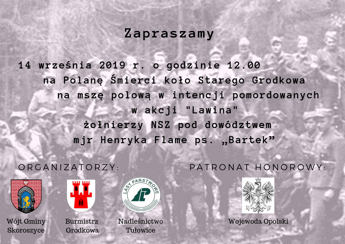 Zaproszenie na mszę polową w intencji pomordowanych w akcji "LAWINA" żołnierzy NSZ