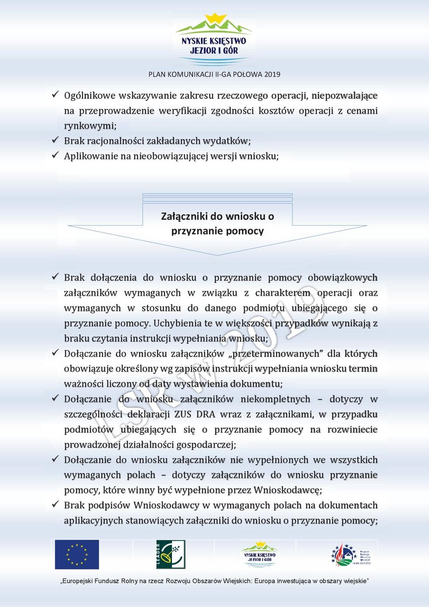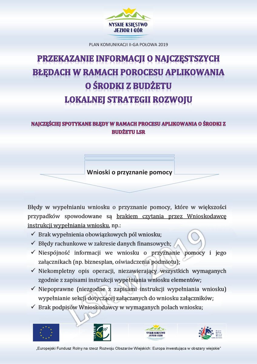 Plan komunikacji - Przekazanie informacji o najczęstszych błędach w ramach procesu aplikowania o środki z budżetu LSR