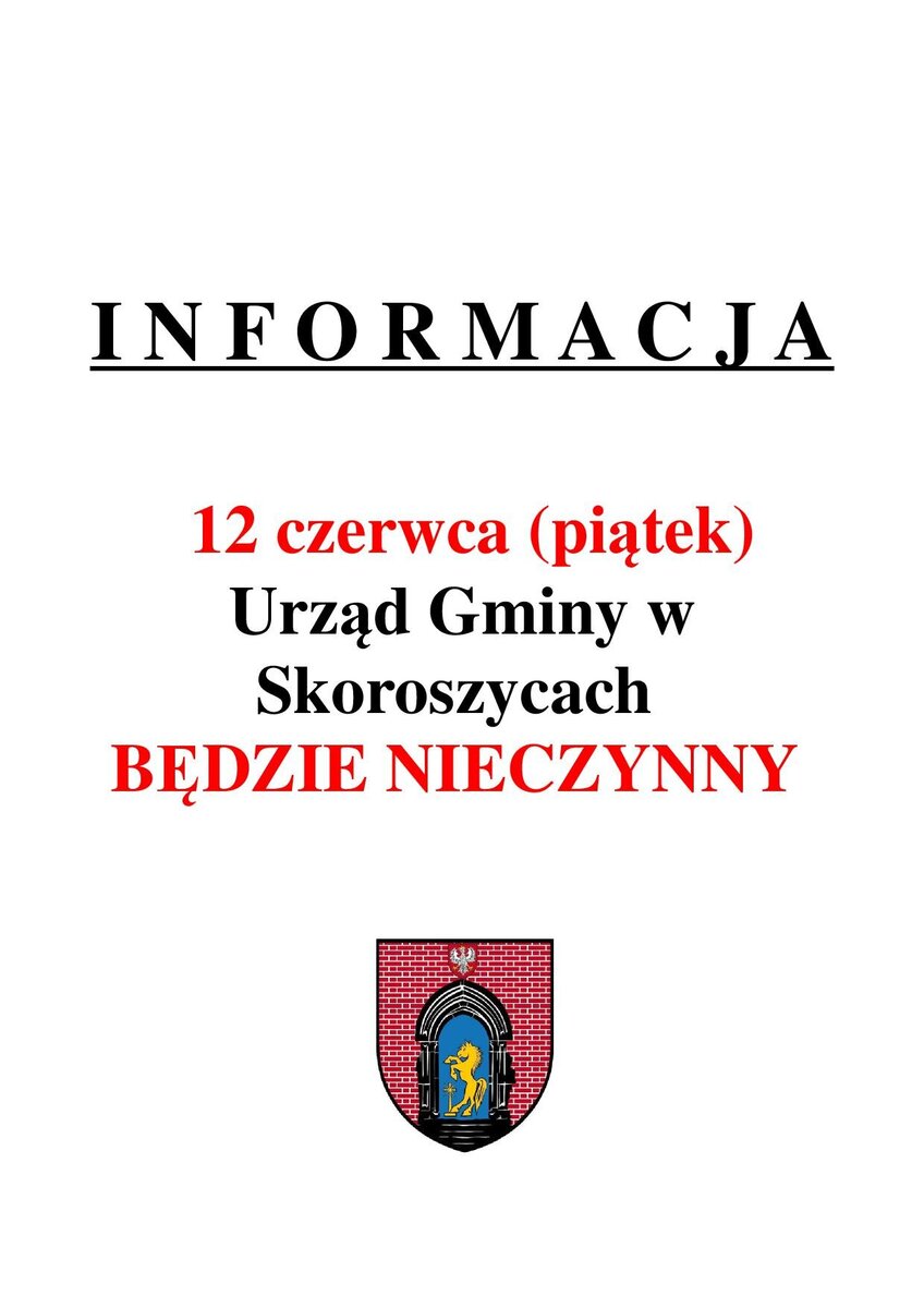 12 czerwca 2020 r. Urząd Gminy będzie zamknięty
