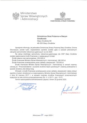 W dniu 16 czerwca dostaliśmy promesę o wartości 510 tysięcy złotych na zakup nowego wozu bojowego strażackiego dla naszej OSP ze starego Grodkowa! Gratulacje dla naszych Druhów.