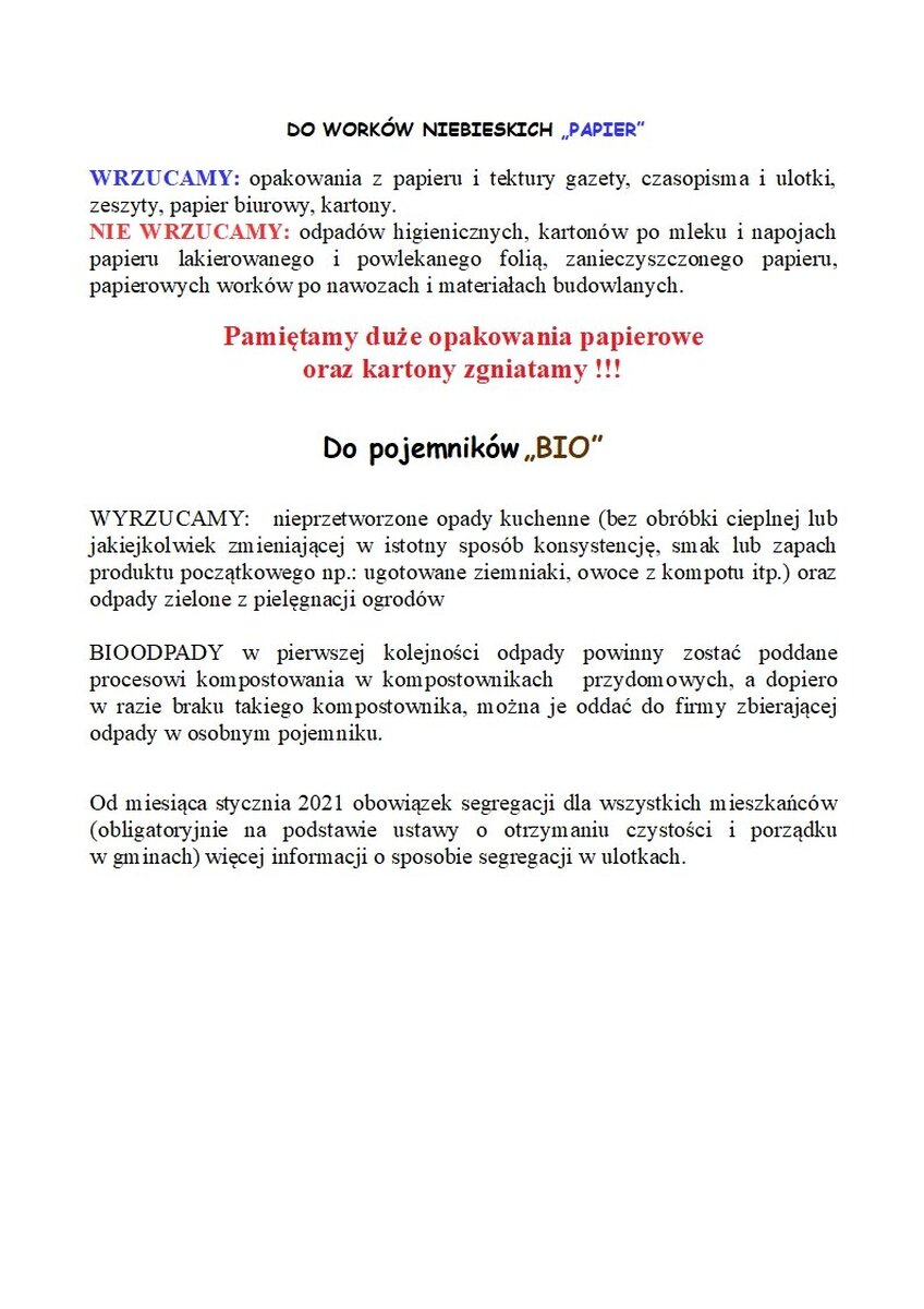 Uwaga! Zmiany w segregacji odpadów 2021!