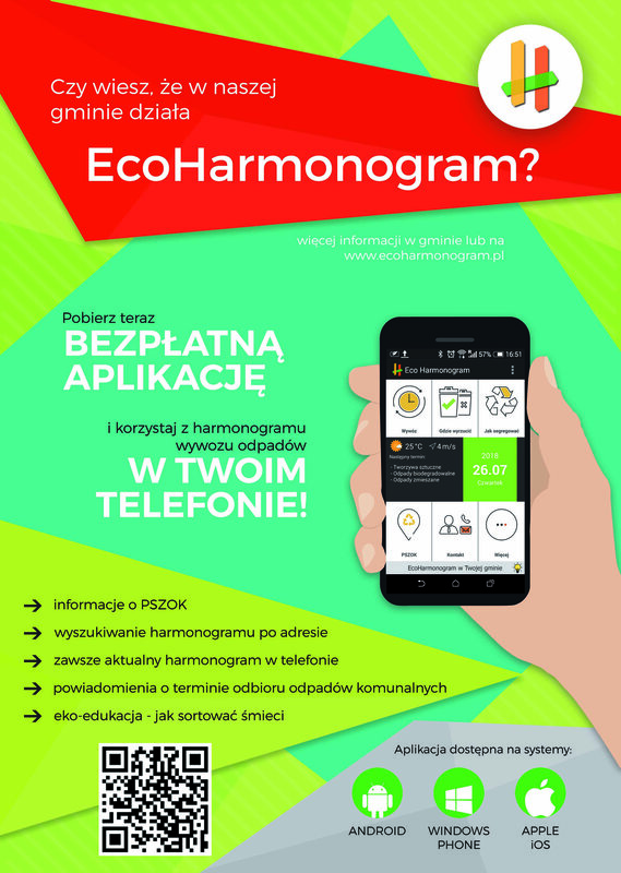 Od stycznia 2021 r. została uruchomiona aplikacja mobilna EcoHarmonogram, która pozwala na pobranie harmonogramu wywozu odpadów komunalnych podając swój adres zamieszkania.