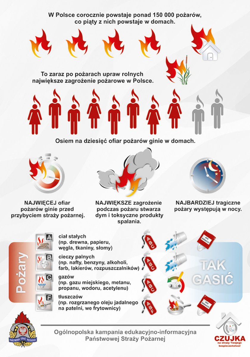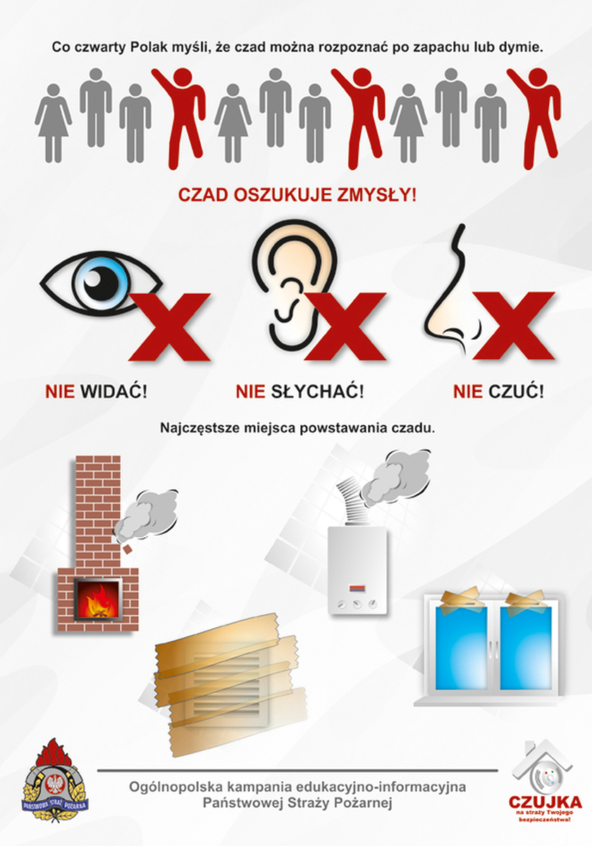 Z tego powodu, Komenda Główna Państwowej Straży Pożarnej realizuje kampanię edukacyjno-informacyjną „Czujka na straży Twojego bezpieczeństwa!”, na temat zagrożeń związanych z możliwością powstania pożarów w mieszkaniach lub domach jednorodzinnych oraz zatruciem tlenkiem węgla.