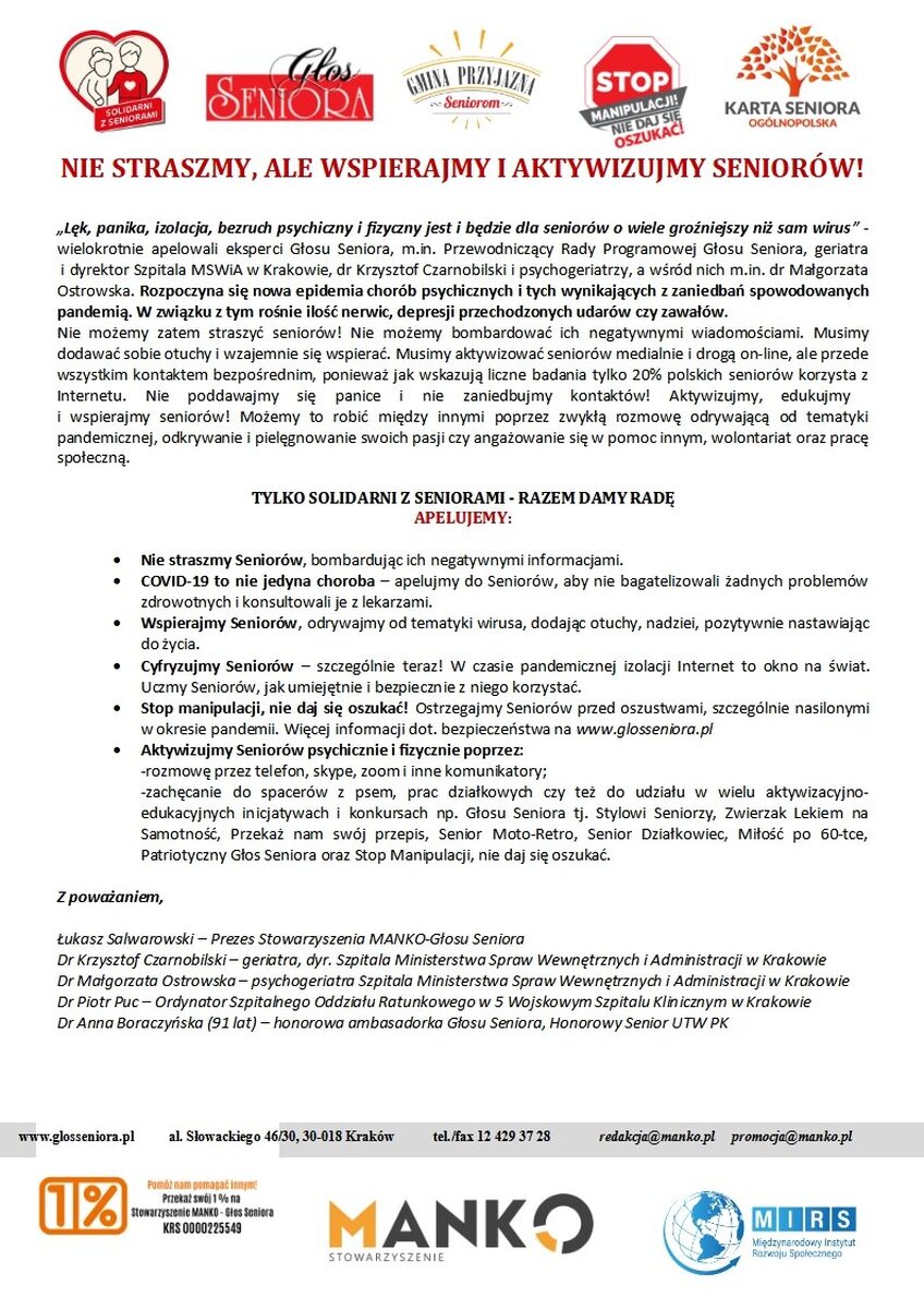 NIE STRASZMY, ALE WSPIERAJMY I AKTYWIZUJMY SENIORÓW!