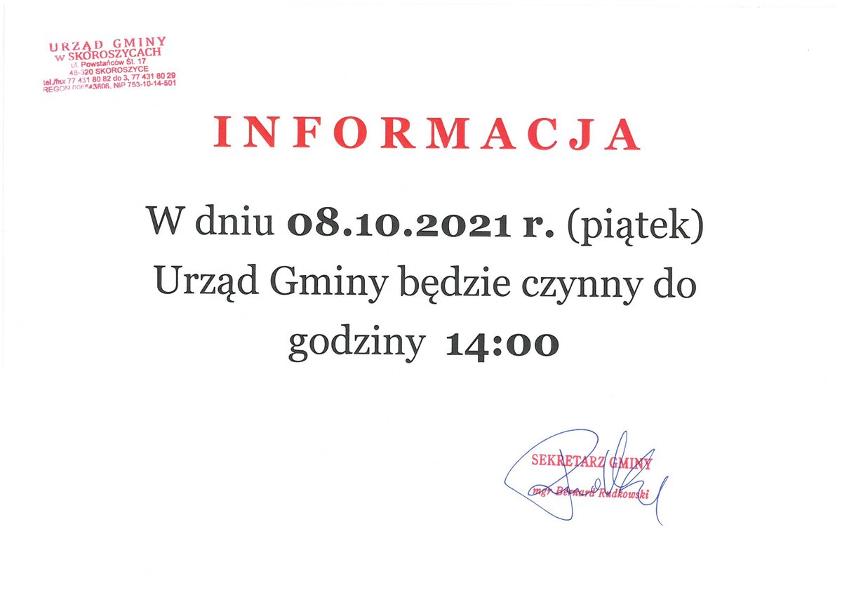 Urząd Gminy czynny do godz. 14:00