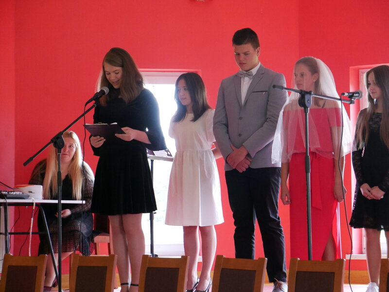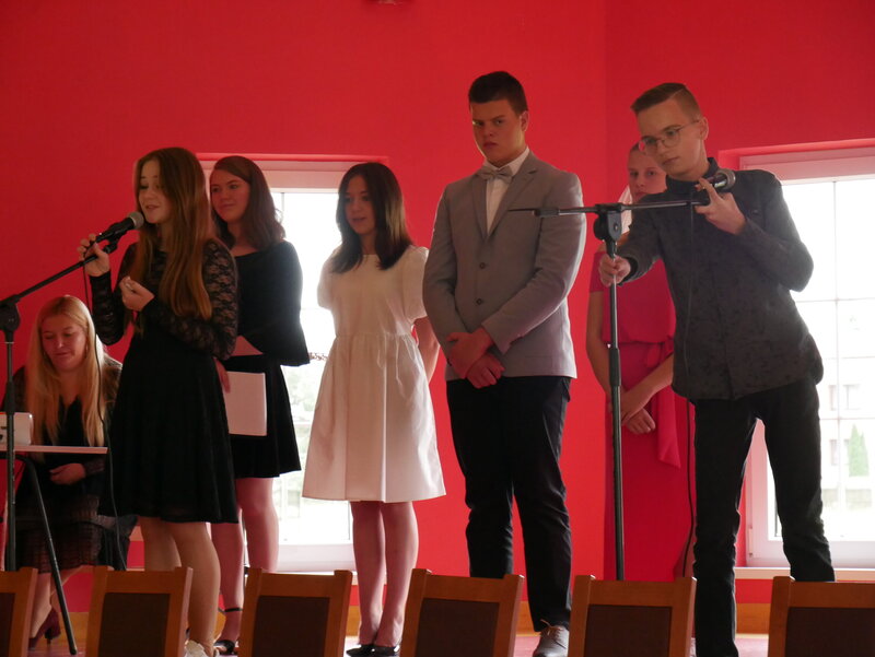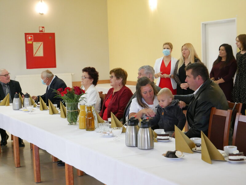 Kierownik USC Pani Katarzyna Herbut przywitała przybyłych gości, a następnie oddała głos Pani Barbarze Dybczak – Wójt Gminy Skoroszyce, która pogratulowała Jubilatom wspólnych, pięknych i wspaniałych chwil życia razem w zdrowiu, życząc pogody ducha, siły i radości na kolejne lata. Uroczystość uświetnił występ młodzieży z Zespoły Szkół w Skoroszycach pod opieką Pani Beaty Murańskiej.