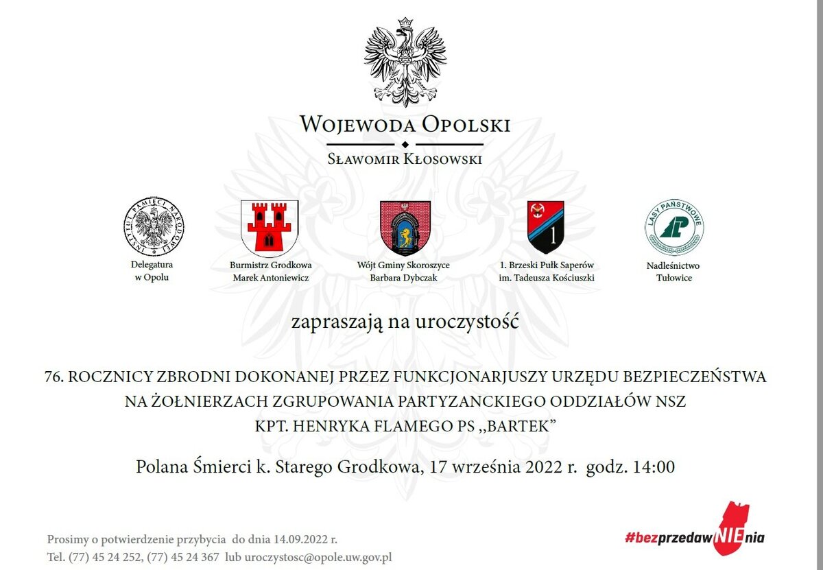 76. ROCZNICY ZBRODNI DOKONANEJ PRZEZ FUNKCJONARJUSZY URZEDU BEZPIECZENSTWA NA ZOŁNIERZACH ZGRUPOWANIA PARTYZANCKIEGO ODDZIAŁÓW NSZ KPT. HENRYKA FLAMEGO PS ,,BARTEK”