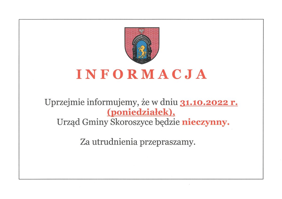 Uwaga! 31 października Urząd Gminy będzie nieczynny.
