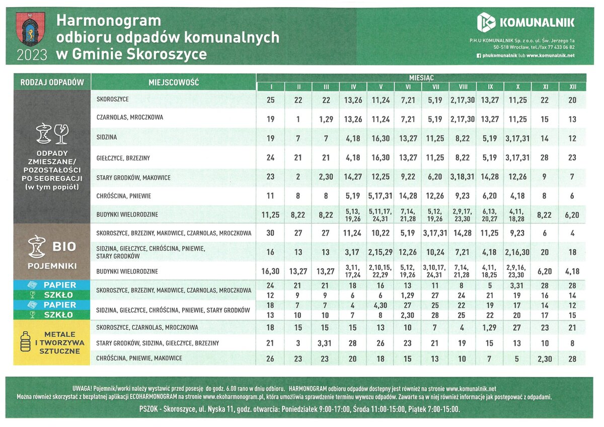 Nowy harmonogram odbioru odpadów na 2023 r.