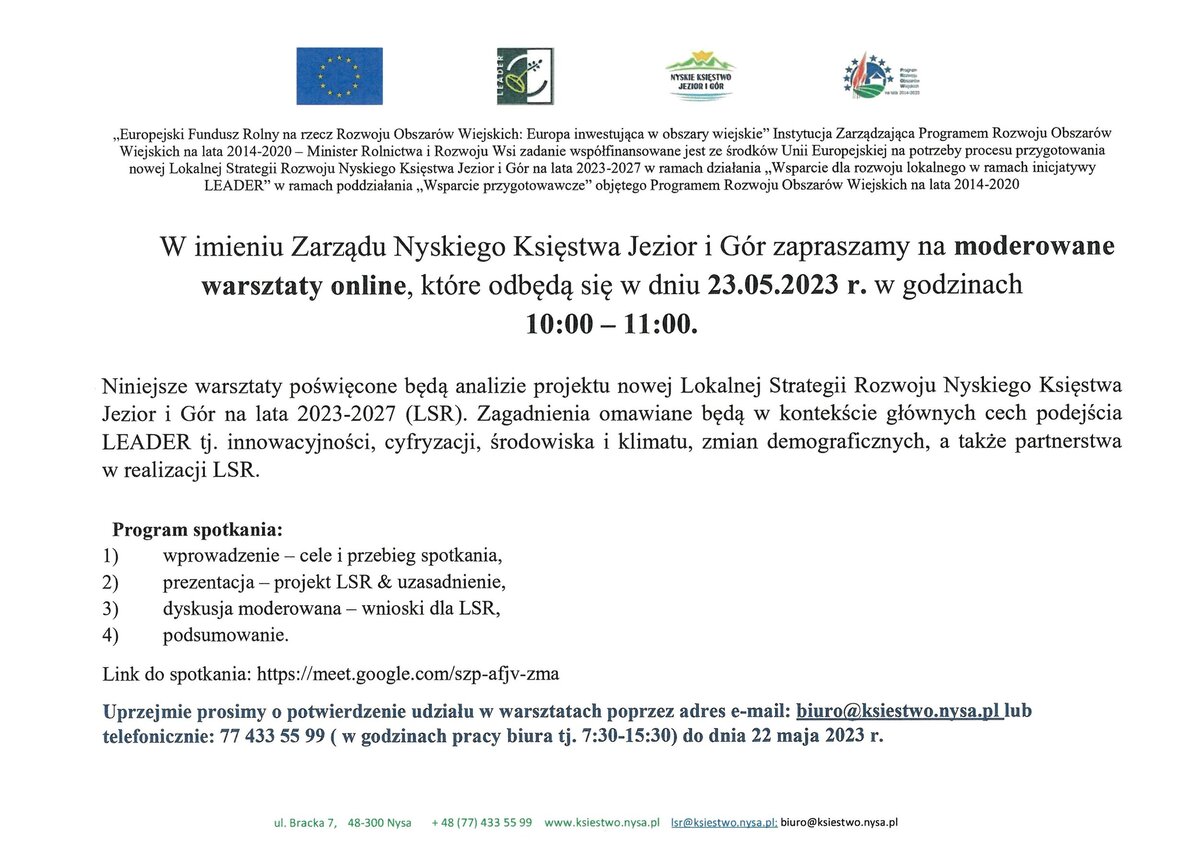 Nyskie Księstwo Jezior i Gór zaprasza do udziału w moderowanych warsztatach online, które odbędą się w dniu 23.09.2022 r. w godzinach 11:00 – 13:00.