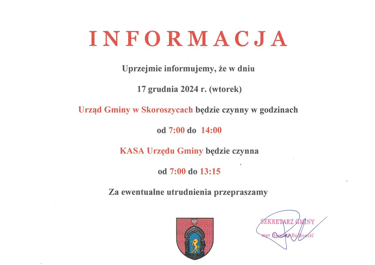 Urząd Gminy czynny do godz. 14:00
