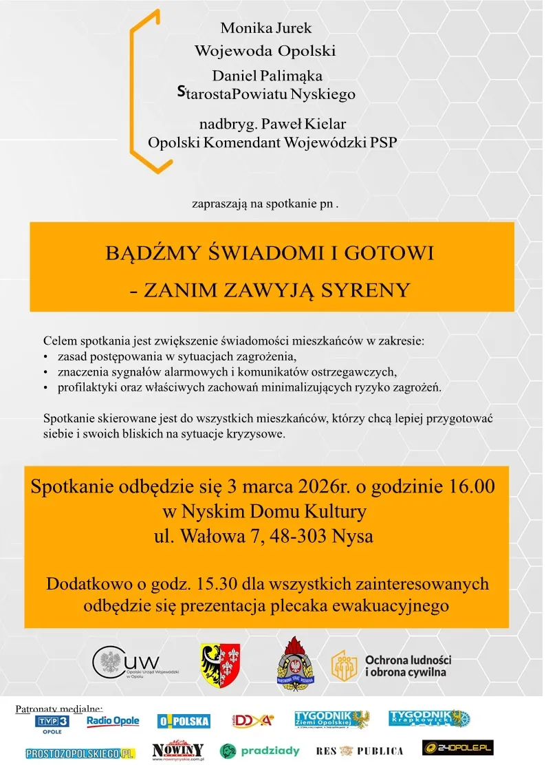 Zaproszenie BĄDŹMY ŚWIADOMI I GOTOWI- ZANIM ZAWYJĄ SYRENY