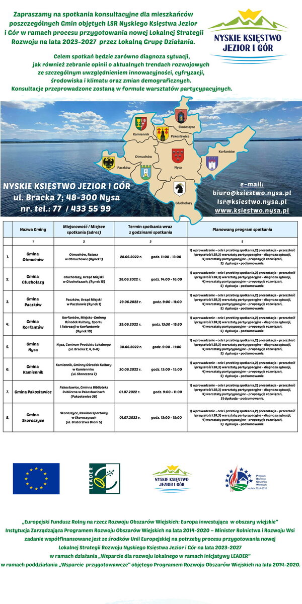 Konsultacyjnych dla mieszkańców Gmin objętych LSR Nyskiego Księstwa Jezior i Gór w ramach procesu przygotowania nowej Lokalnej Strategii Rozwoju na lata 2023-2027 przez Lokalną Grupę Działania